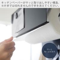キッチンペーパーがサッと取り出しやすい構造。片手でペーパーは切れませんので、片手をホルダーに添えて切ってください。