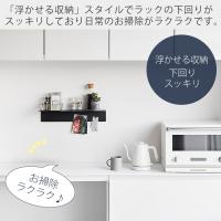壁面にラックを直接取り付ける「浮かせる収納」スタイルです。ラックの下回りがスッキリしており、日常のお掃除をラクラクこなせます。
