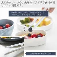 太めのグリップや、先端のギザギザで食材が滑りにくい構造。小さな食材もつまんだり、大きな食材をひっくりかえしたりしやすくなっています。
