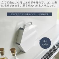 立てて自立させることができるので、コンロ奥などに収納できます。厚さが約4cmとスリムなので邪魔になりません。
