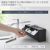 洗面台で使用する小物の収納にぴったりな仕切り付きの収納ケース。扉はフラップ式で片手で簡単に開閉が可能です。扉を閉めれば中が見えないので、ごちゃごちゃとせず小物を隠して収納できます。