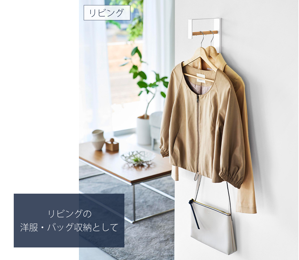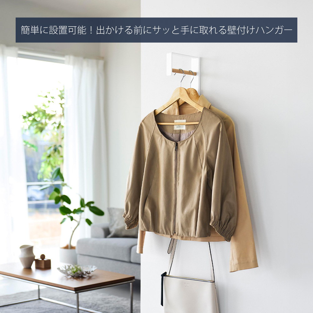 玄関やリビングに設置して、アウターやバッグなどの小物をまとめて収納できる、便利なハンガーが登場しました。付属の石こうボードピンで簡単に設置できます。