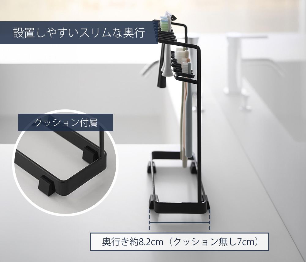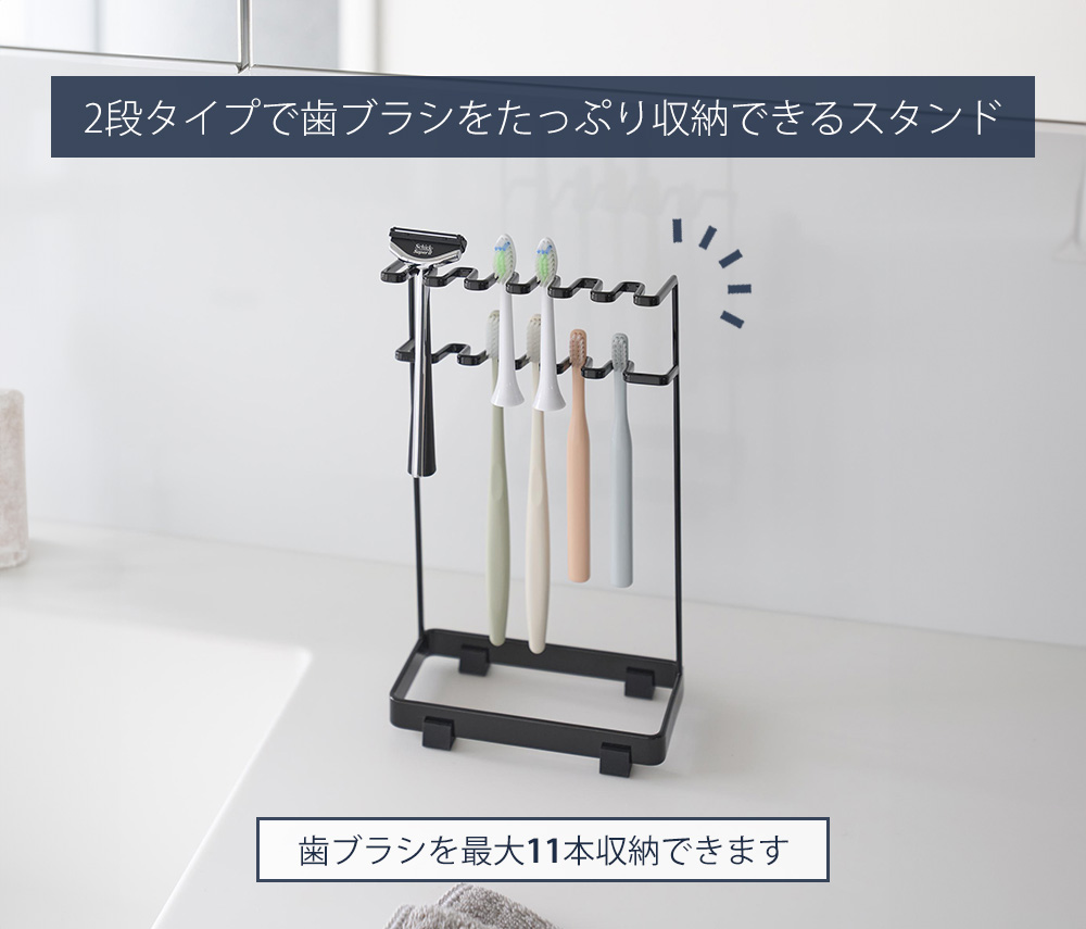 5本収納が多かったtowerの歯ブラシ収納の中で最大となる11本収納できる2段タイプのスタンド仕様が登場。ご家族が多い、歯ブラシを磨く場所によって使い分けているなど、今までの歯ブラシ収納では足りなかった方におすすめです。