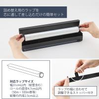 詰め替え用のラップを芯に通して、ケースに入れるだけの簡単セット。様々な幅のラップに合わせて調整できるストッパーが付属しています。