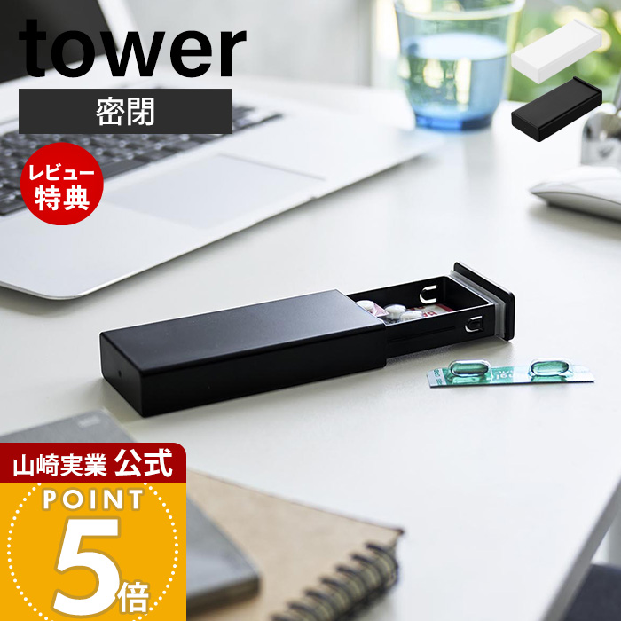 山崎実業 公式 タワー 密閉スリムピルケース tower 携帯用 薬ケース サプリメントケース 防湿 パッキン コンパクト シートごと 10662 10663