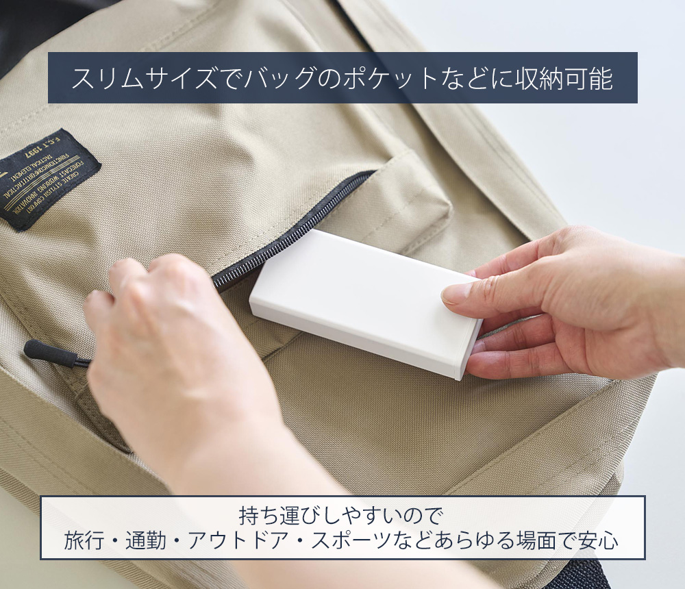 スリムサイズなのでバッグやポケットなどにいれて持ち運びが可能。旅行、通勤、アウトドア、スポーツ時など持ち運びしやすいので、あらゆる場面で活躍します。