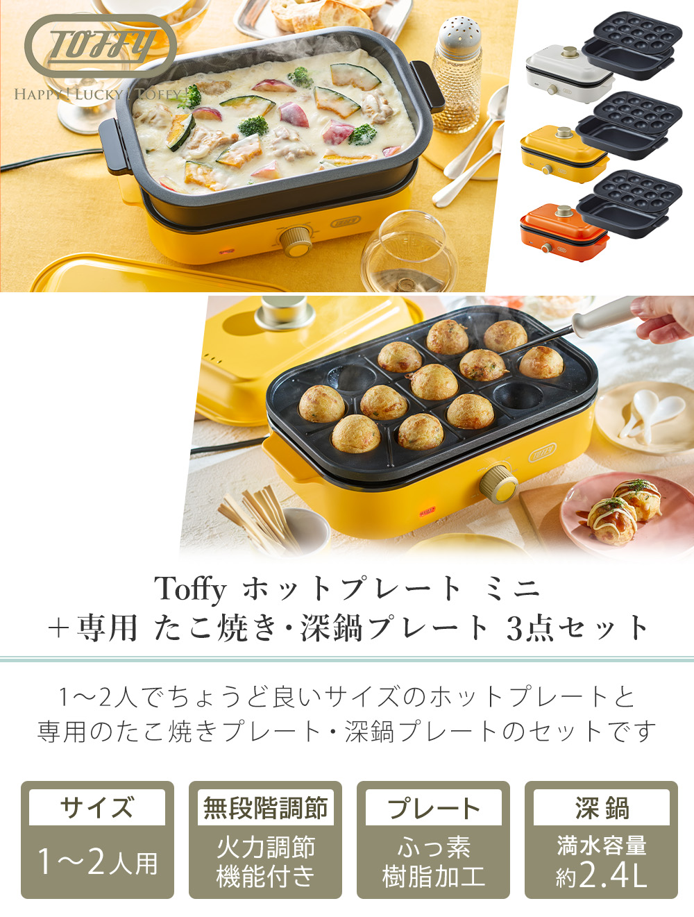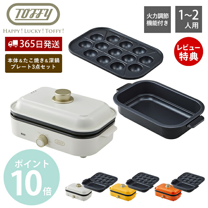 商品名Toffy ホットプレート ミニ+専用 たこ焼きプレート+深鍋プレート 3点セット