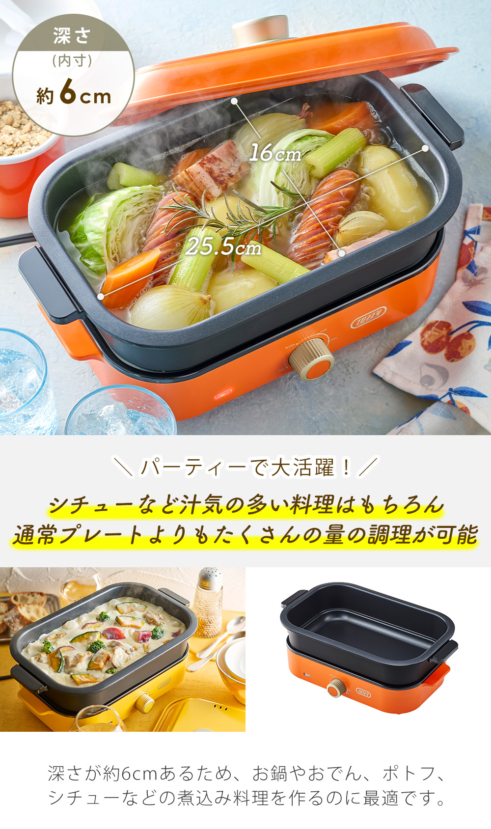 本体サイズ本体:(約)幅30.5×奥行19×高さ14cm ※平面プレート・ふた使用時
