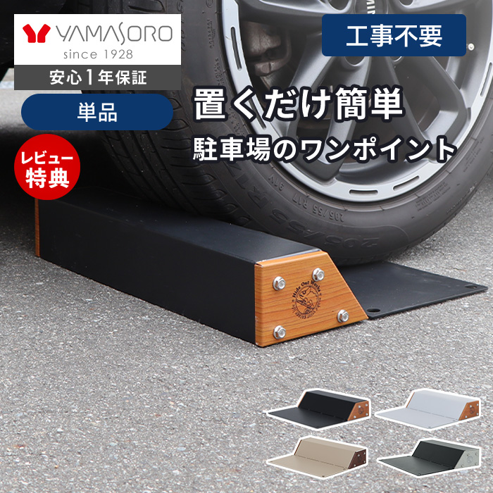 通常の車止めと違い地面との接地面が大きいため、摩擦力と車の重さが加わることでずれにくくなっています。