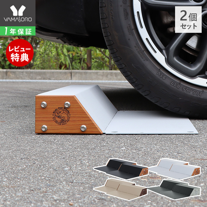 通常の車止めと違い地面との接地面が大きいため、摩擦力と車の重さが加わることでずれにくくなっています。