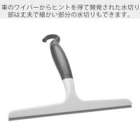 | 車のワイパーからヒントを得て開発された水切り部は丈夫で細かい部分の水切りもでき、筋が入りにくいのが特徴。とても柔らかいので、窓や鏡の面にぴったり沿うことができ、スムーズに水切りできます。 柔らかくて持ちやすいハンドルは濡れた手でも滑りにくく、柔軟性のある回転するフック部を使えば、シャワーヘッドやラック、タオルハンガーなどいろいろな場所にかけて収納することが可能。 | ||