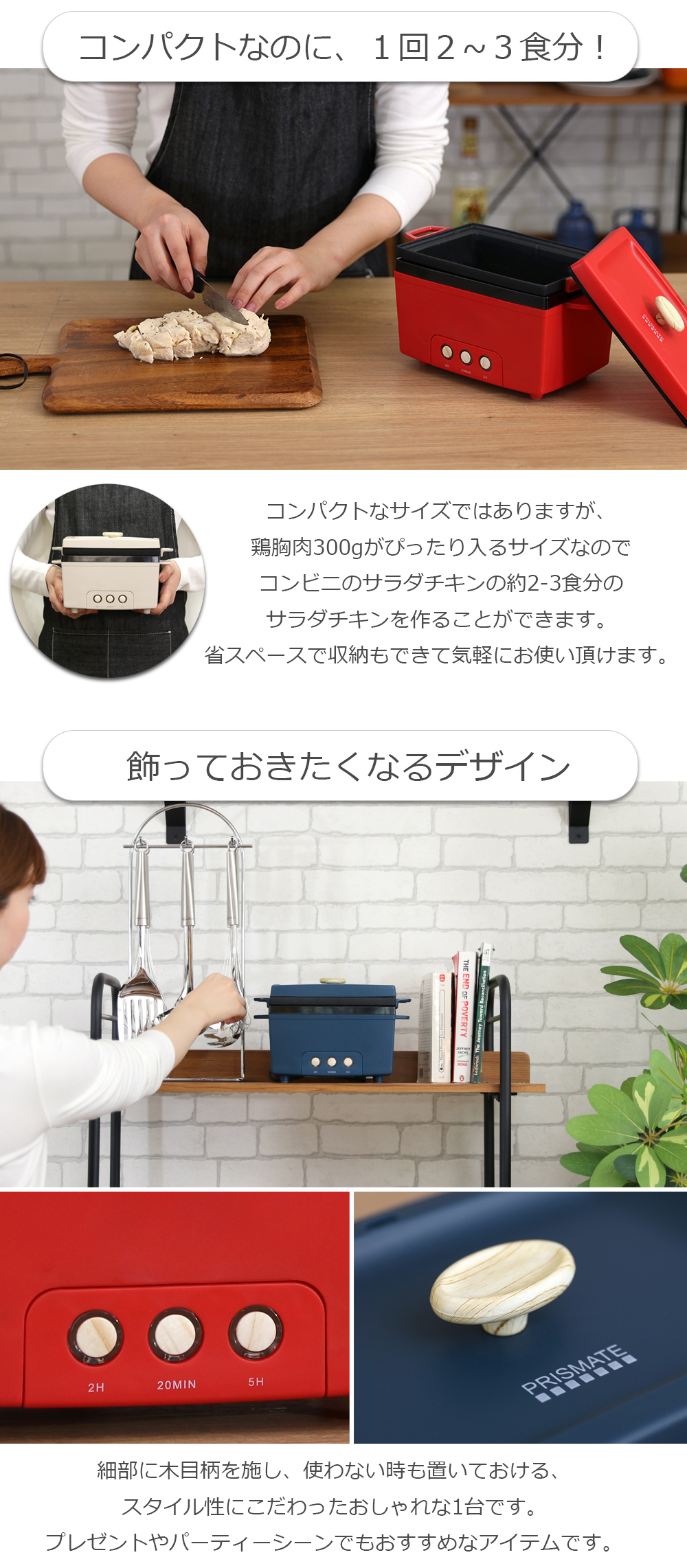 サラダチキンメーカー 電気調理器 おしゃれ家電 レシピ付 低糖質 ダイエット 卓上 簡単調理 PR-SK023 プリズメイト ライフオンプロダクツ