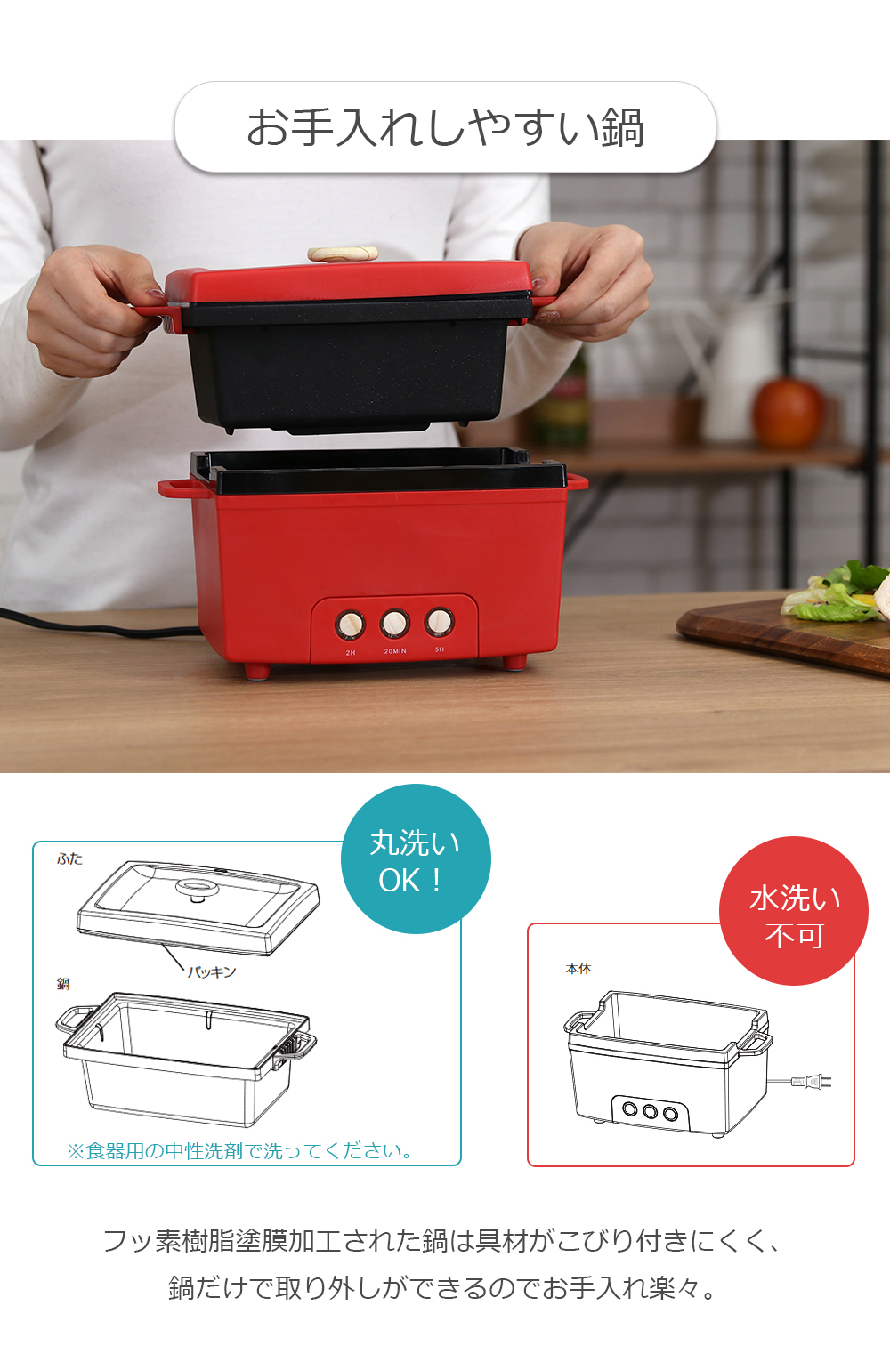 耐熱温度(約)鍋(ふっ素樹脂加工):260℃