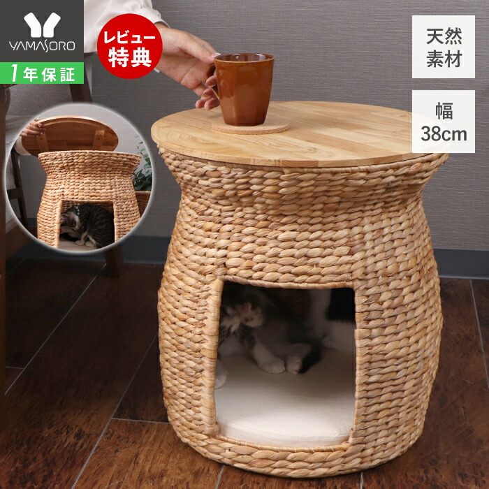 キャットハウス ペットハウス 猫ちぐら風 ハウス ナチュラル テーブル 猫用 おしゃれ クッション付き 屋内用 天然素材 ウォーターヒヤシンス ねこ