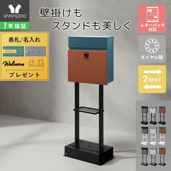 ポスト 置き型 おしゃれ スタンド 玄関 壁掛け 屋外 北欧 ダイヤル 鍵 A4 レターパック対応 2WAY 郵便受け 戸建て ヤマソロ gate ゲート