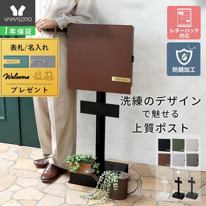 ポスト 置き型 スタンド スタンドポスト おしゃれ 郵便 ポスト 壁付け 鍵付き ハンドル錠 受け A4 メール便 玄関 セラ Serra ヤマソロ