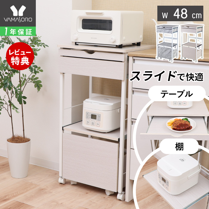| 備考 | お客様組立品 安心1年保証 【ご使用上の注意】 ※2023年7月19日より、お客様の声にお応えしデザインや仕様を大幅にリニューアルいたしました。 ※商品リニューアル以前のレビュー内容には、現行商品と差異のある内容が含まれております。あらかじめご了承ください。 ※スライド棚は炊飯器や電気ケトルなど蒸気が出るものを設置いただくことが可能ですが、ご使用時は上の棚板に直接当たらないように必ず棚板を前に出した状態にしてください。 ※個体差やロット・モニター環境等により、色味やサイズが若干表記と異なる場合がございます。±1〜2cm程度の誤差は許容範囲となりますので、あらかじめご了承の上ご購入下さいませ。 |