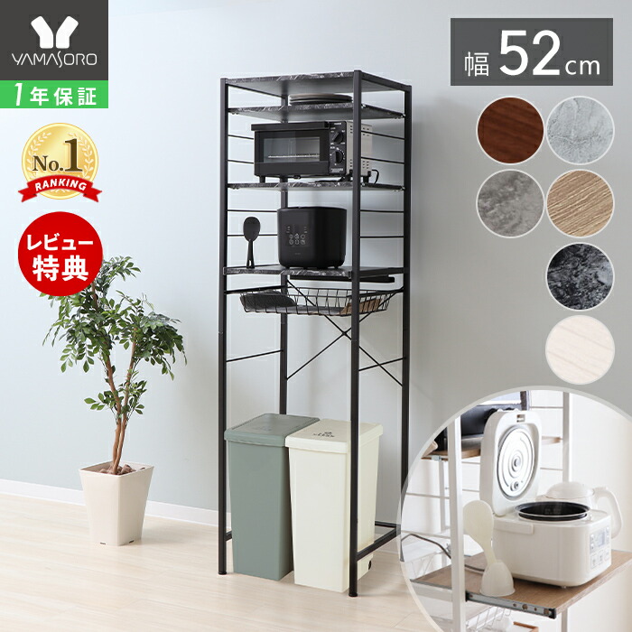 | 備考 | お客様組立品 アジャスター付き ※スライド棚には炊飯器や電気ケトルなど蒸気が出るものを設置いただくことが可能ですが、ご使用時は蒸気が上の棚板に直接当たらないように必ず棚板を前に出した状態にしてください。 ※スライド棚にのみ荷重が加わった状態で棚を引き出すと不安定になります。同等かそれ以上の荷重を可動棚や天板に加えてバランスを取って下さい。 ※個体差やロット・モニター環境等により、色味やサイズが若干表記と異なる場合がございます。 |