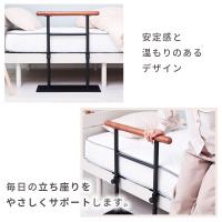 ベッドの乗り降りをサポートします。手すり部分には天然木を使用しており、木のぬくもりを感じられます。寝室に適した落ち着いた色味のデザインです。しっかりとした脚と固定金具が付いている安定感のある商品です。