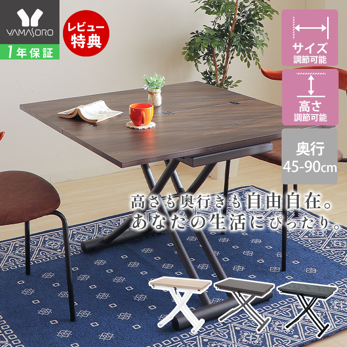 昇降 式 テーブル 正方形 天板拡張 おしゃれ ダイニング リビング デスク 90cm 幅 無段階 高さ 調節 リフティング 白 グロリアス ヤマソロ