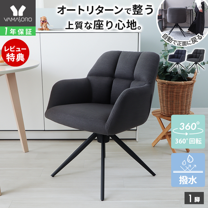 ダイニングチェア 回転 オートリターン 肘付 チェア 回転式 ファブリック 撥水 スチール 脚 黒 モダン 椅子 ネージュ ピボ ヤマソロ