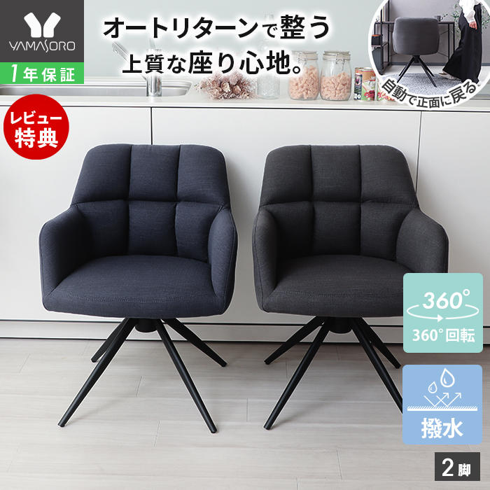 ダイニングチェア 2脚 セット 回転 オートリターン 肘付 チェア 回転式 ファブリック 撥水 スチール 脚 椅子 ネージュ ピボ ヤマソロ