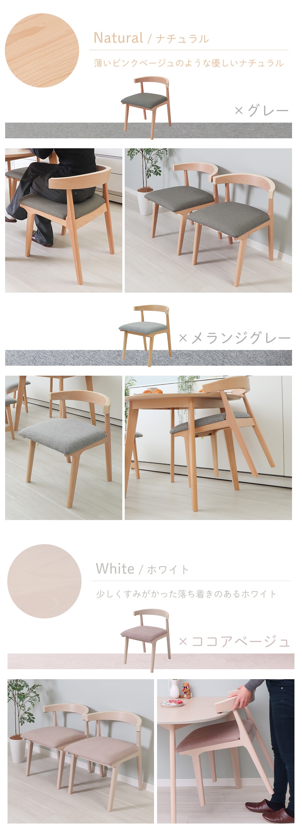 ダイニングチェアセット 2脚セット リビング リビングチェア ホワイト お掃除ロボ ルンバ対応 木目 食卓 ナチュラル 二人暮らし 省スペース コンパクト