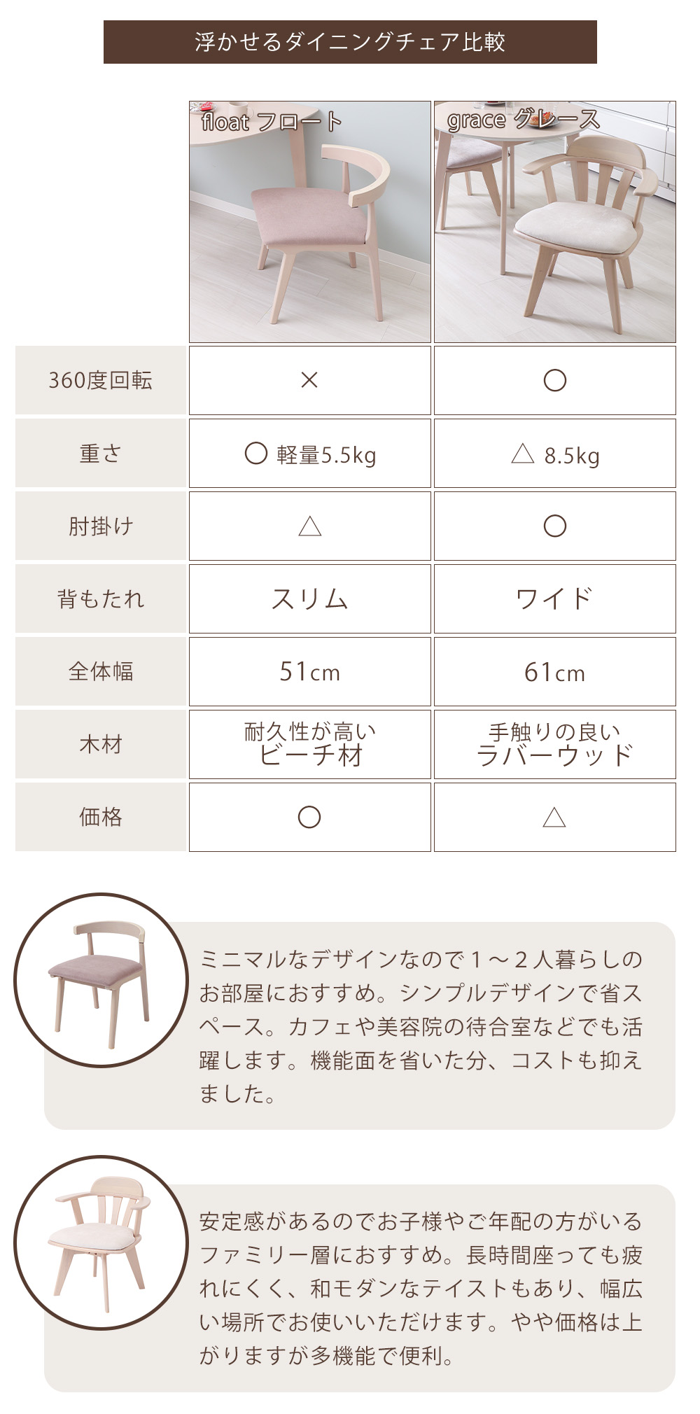 商品名Yummy -float(フロート)- ダイニングチェア 2脚セット