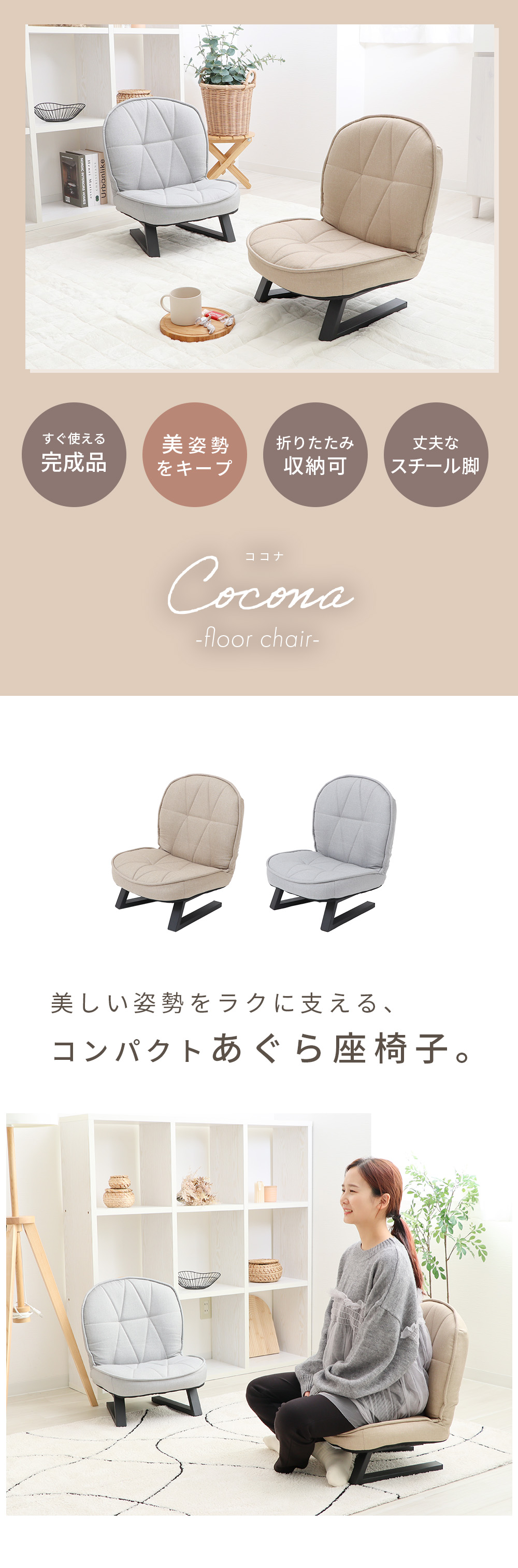 商品名コンパクトあぐら座椅子 Cocona -ココナ-