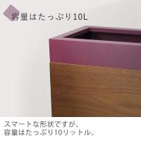 \高級感のあるスタイリッシュなゴミ箱/塗料でカラーコーティングされた上蓋を外して袋を設置します。蓋の重みで袋が固定され、外側には袋が見えないデザイン。木目調の本体はおしゃれで、リビングや寝室などの各お部屋に合わせやすい点もおすすめ。