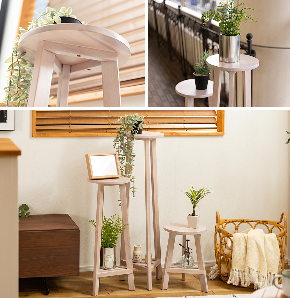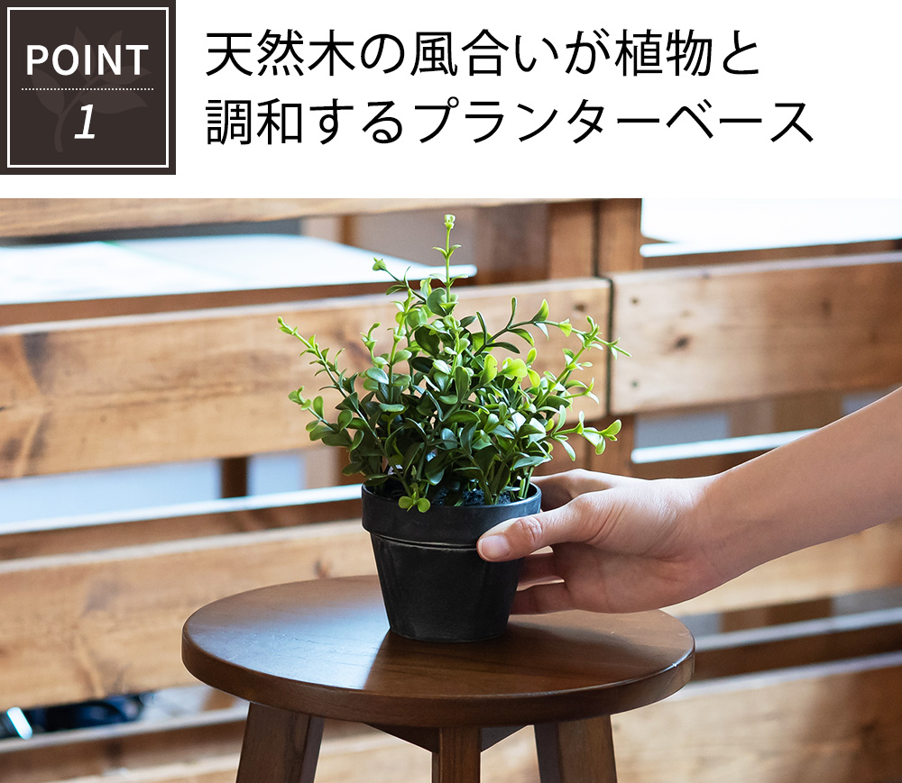 天然木の風合いが味わい深いプランターベース。サイズは3種類あり、お部屋の雰囲気によってお選び頂けます。