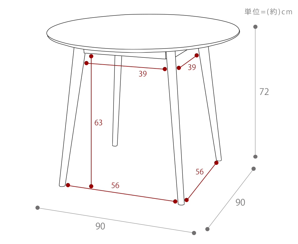 | サイズ | (約)幅90×奥行90×高さ72cm |