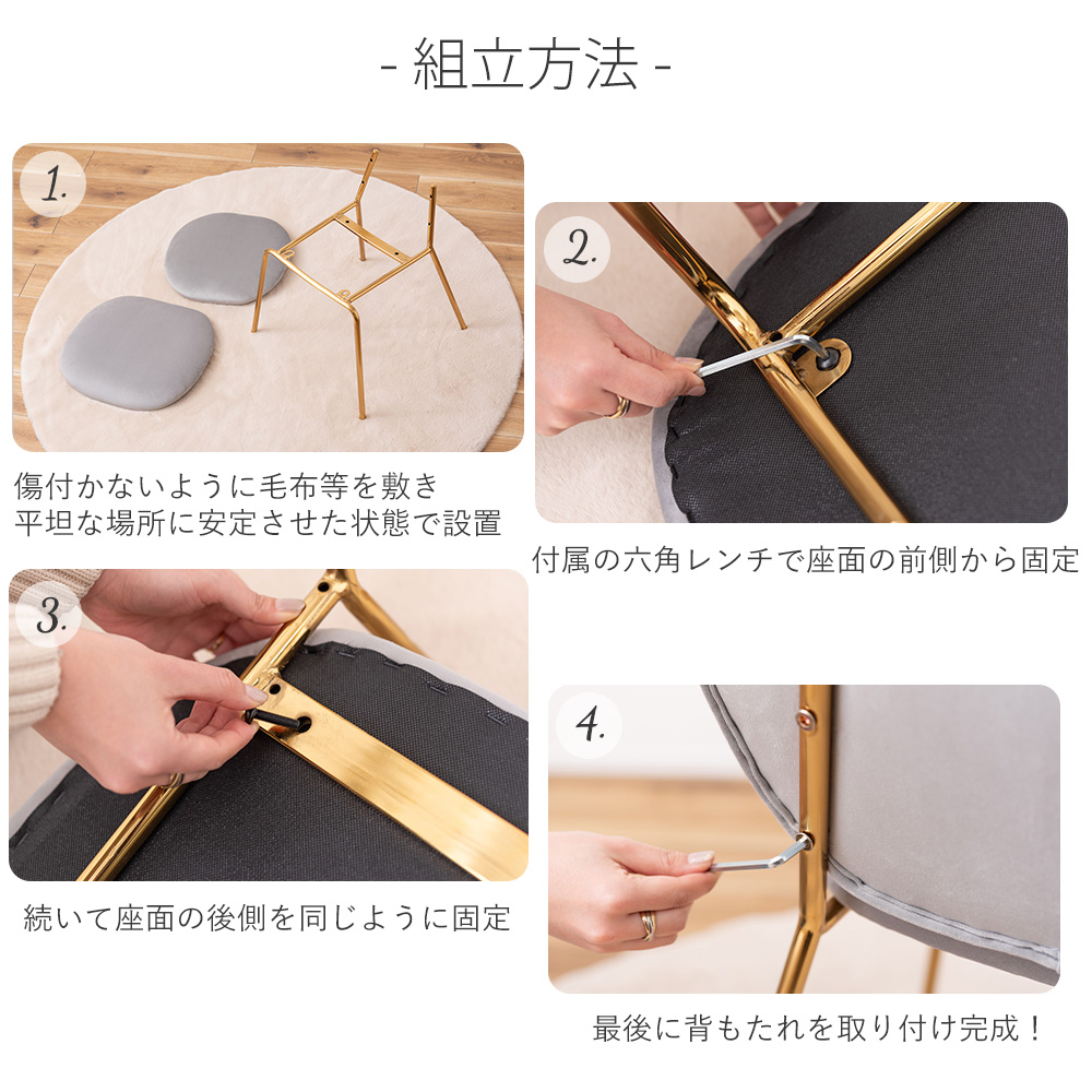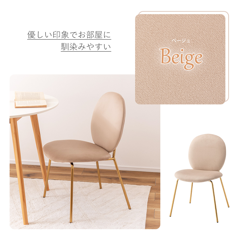 チェア イス 椅子 いす 背もたれ 肘掛けなし アームレス シンプル かわいい 淡色 パステル おしゃれ アンティーク ゴールド ベロア ガーリー アイボリー 白 ホワイト ベージュ グレー 灰