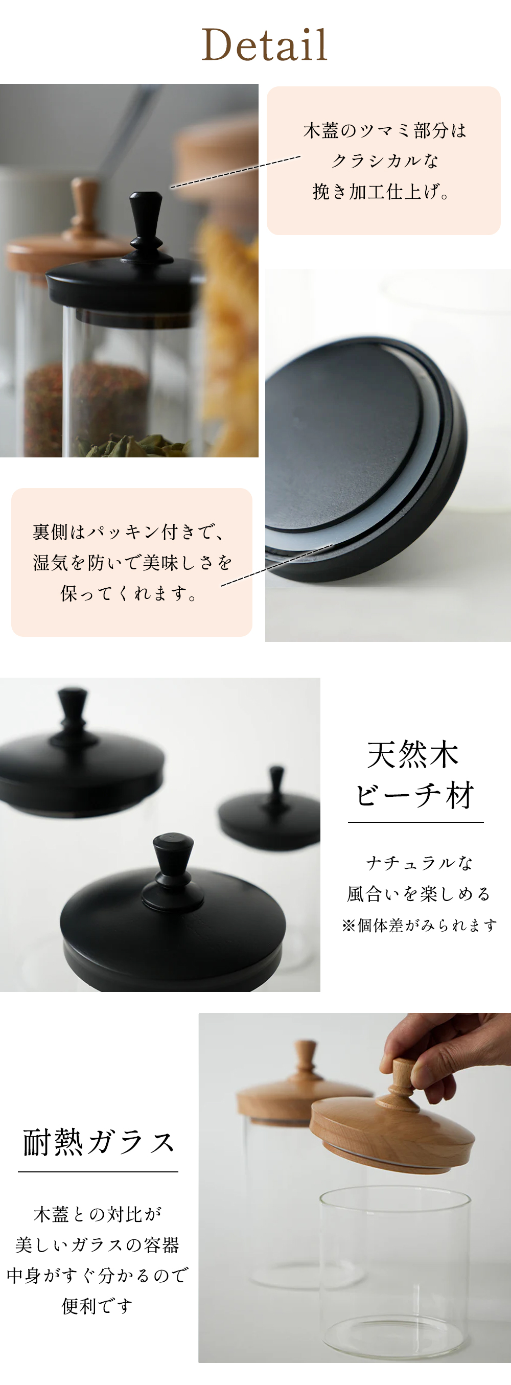 素材耐熱ガラス、ビーチ材