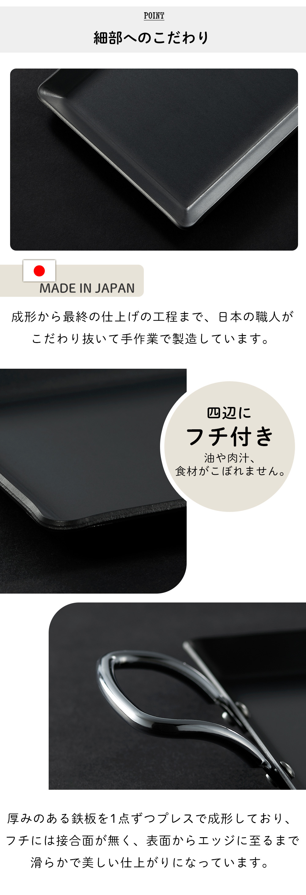 錆びに強く風合い豊かな黒皮鉄に、ビタクラフト独自の「ACR処理(窒化 4層加工)」を施すことで、錆びにくく使いやすい究極の鉄板に。