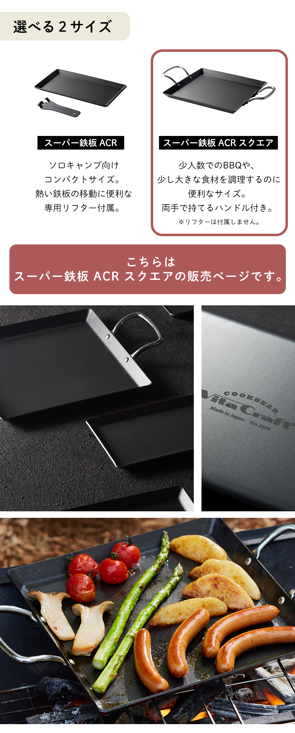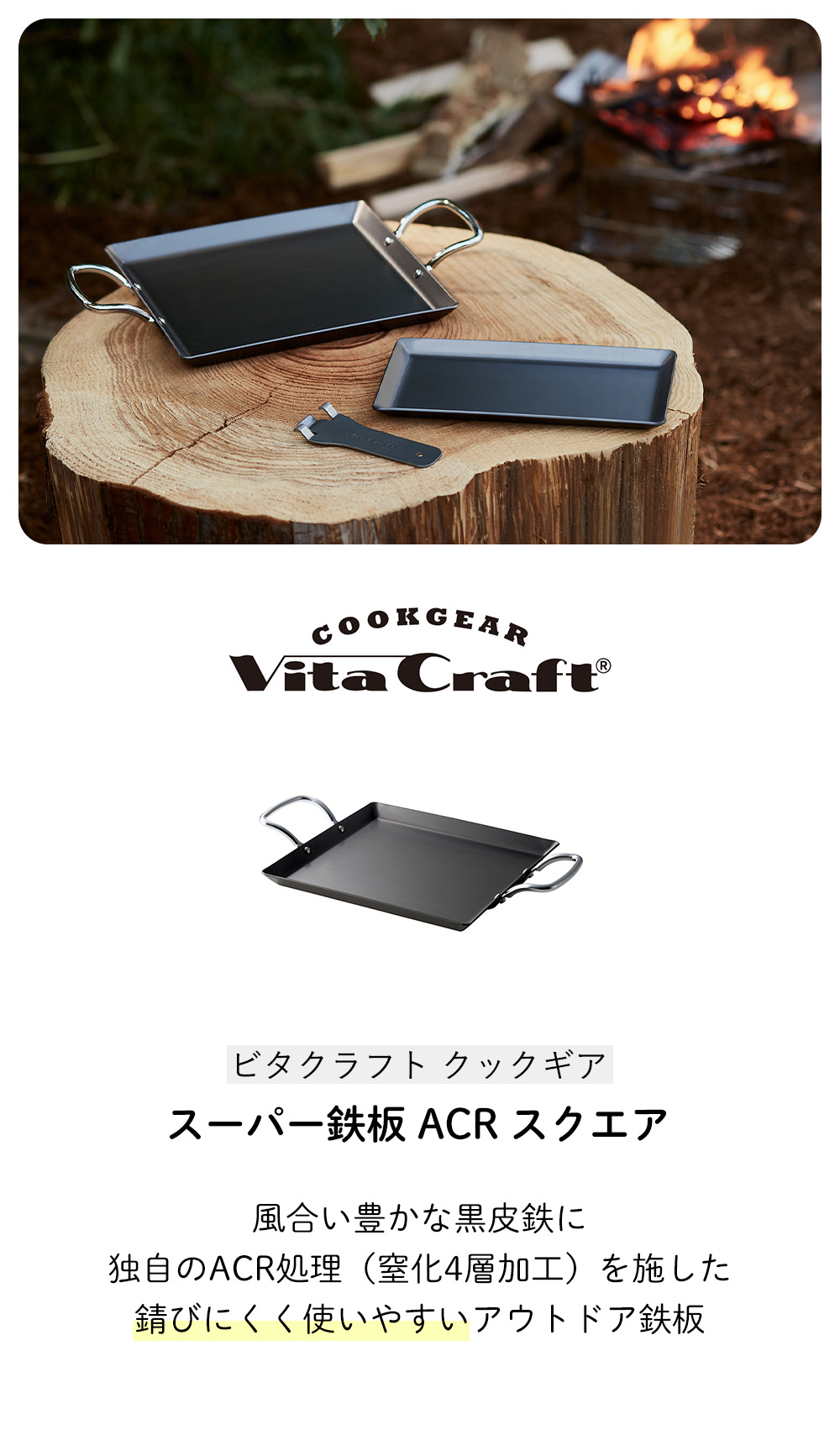 ビタクラフト クックギア VitaCraft スーパー鉄板 ACR スクエア 日本製 鉄 使いやすい サビにくい IH対応 シンプル アウトドア 直火 ガス火 黒皮鉄 キャンプ