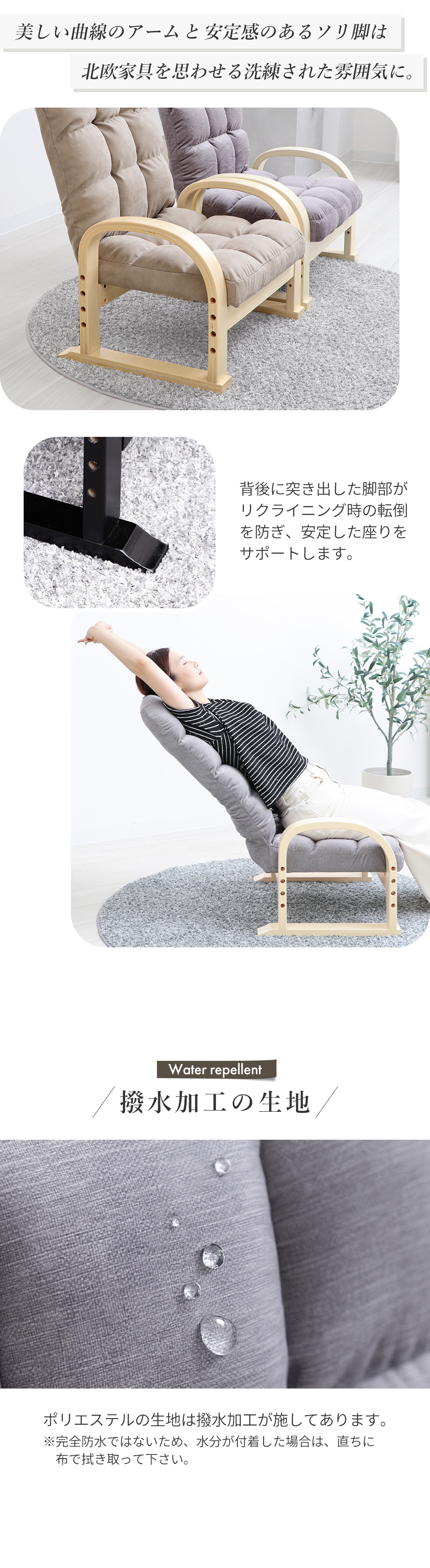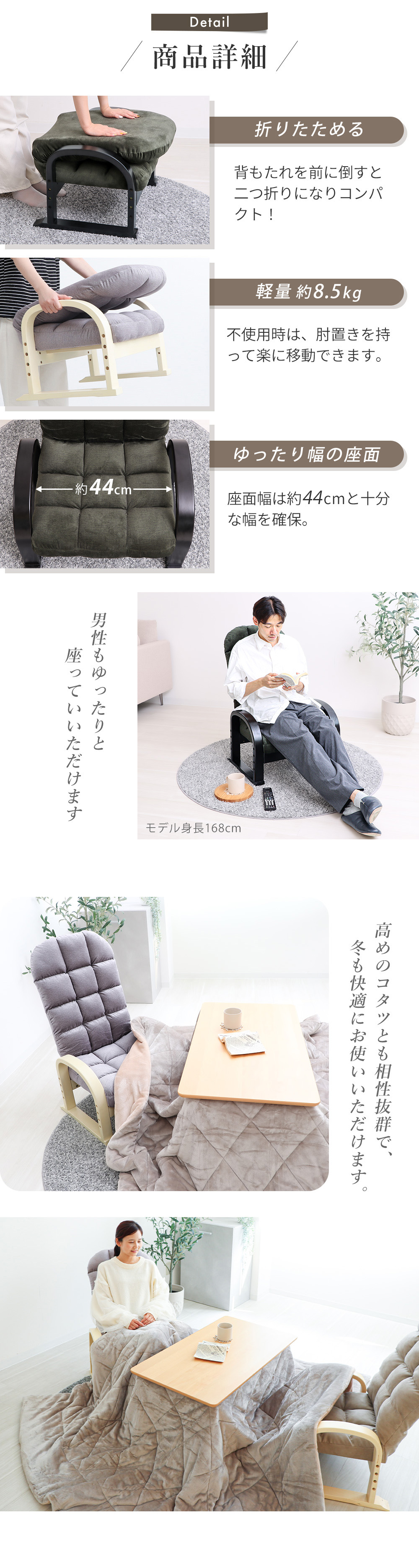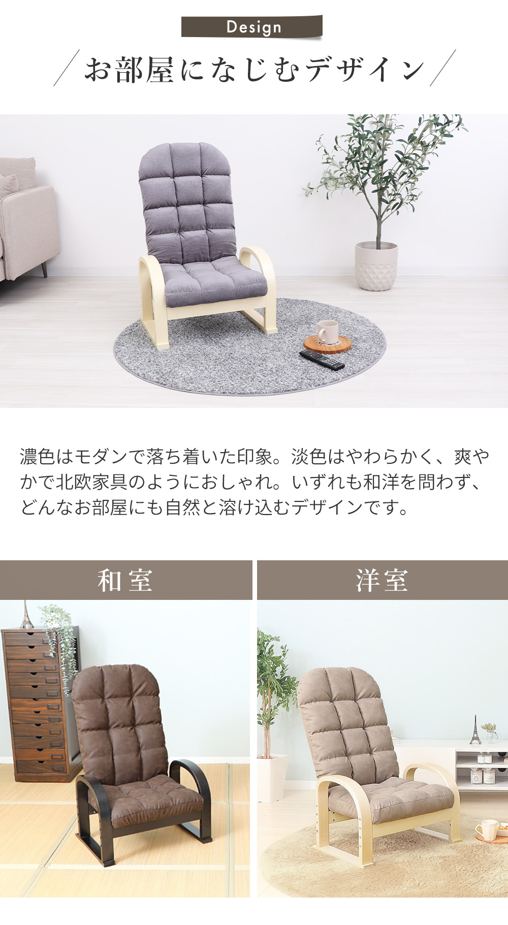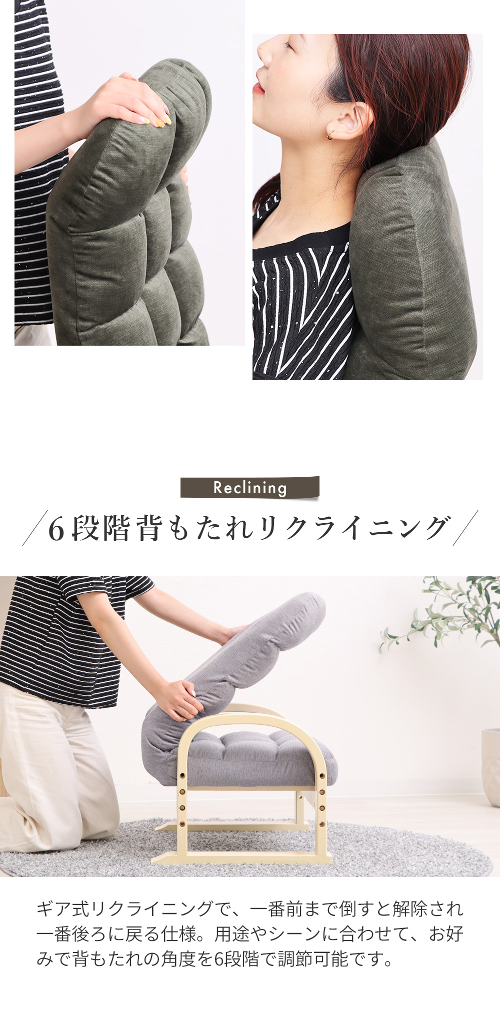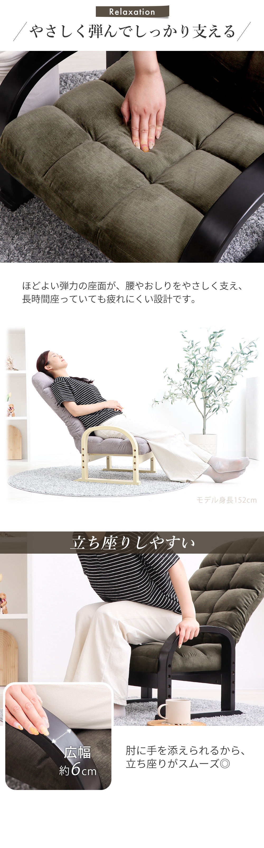 【完成品】リクライニングコンパクト座椅子。肘付きで立ち座りがしやすいフロアチェアです。
