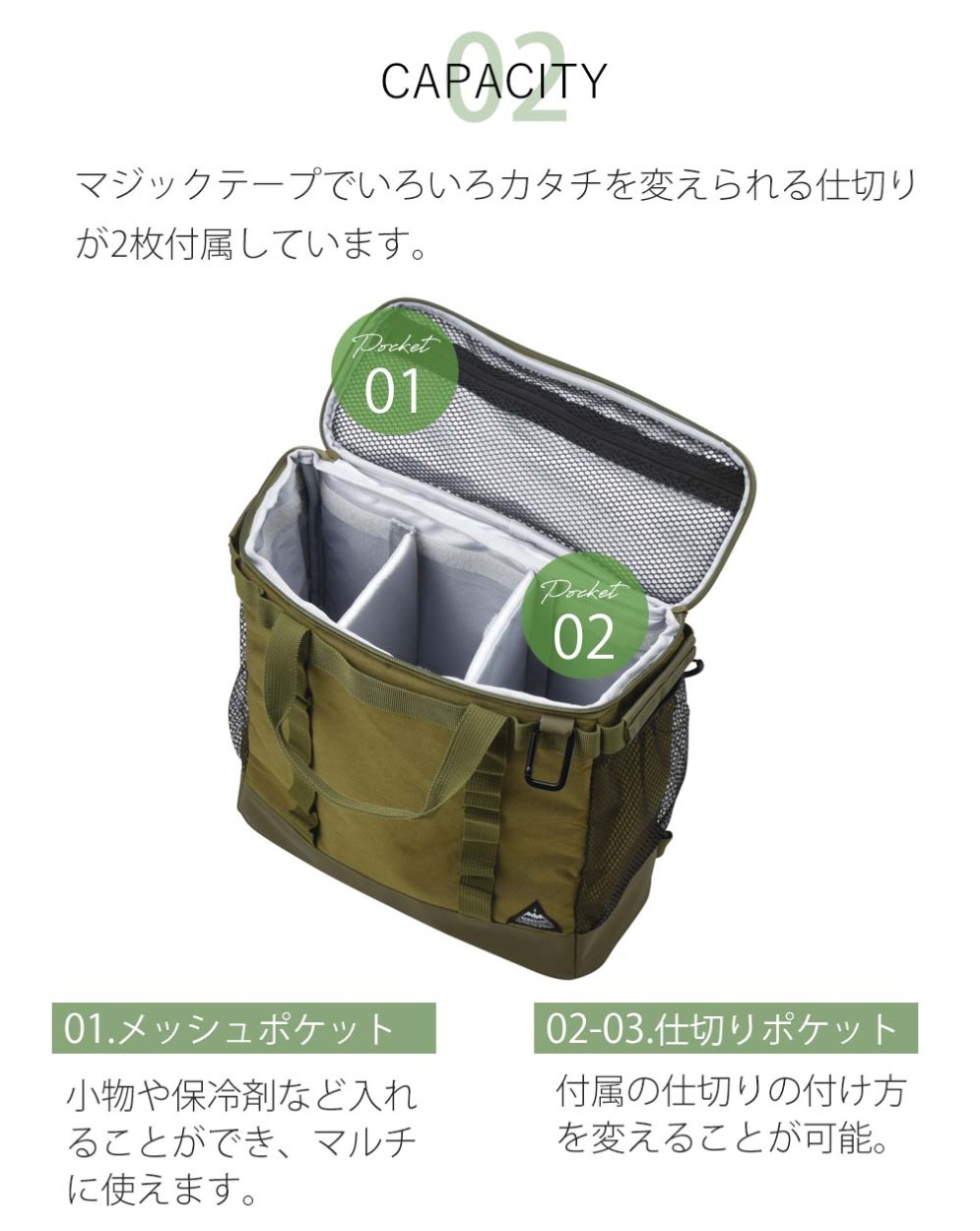 仕切りが2枚あり、物に合わせてポケットサイズも変えられます。