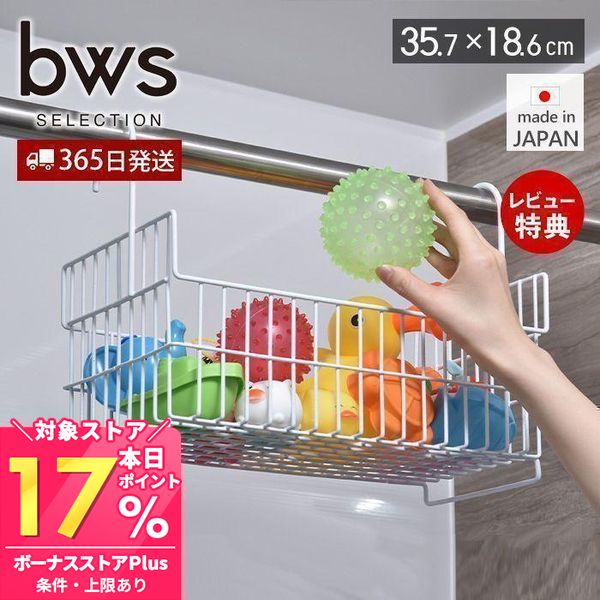 | 子供の手の届かない高さに設置できるため安心。 また、バスケットの手前と奥側が大きく開いているため、どちらからでも収納物が取り出しやすくなっています。 乾燥もしやすく衛生的。 |