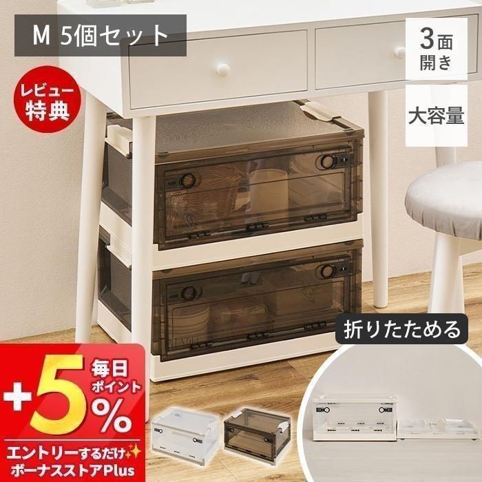 収納ボックス PS100 M 5個セット 取っ手付き ふた付き 前開き ケース 折りたたみ 棚 キャスター付き 3面開き コンテナ プラスチック 萩原