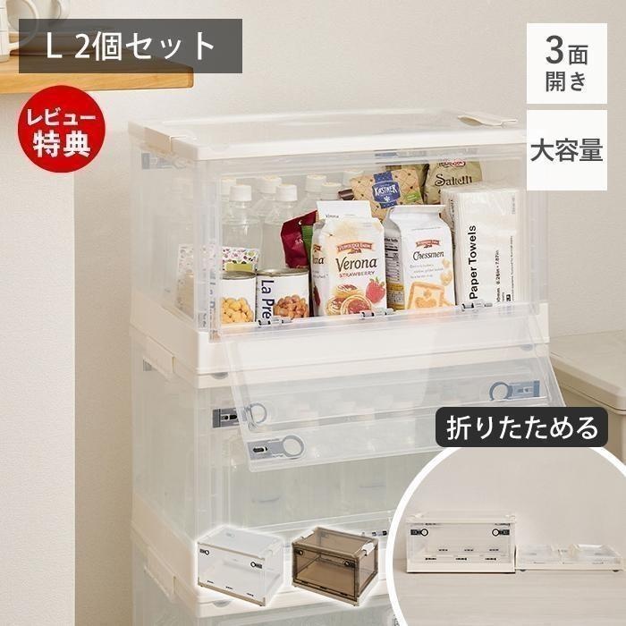 収納ボックス PS100 L 2個セット 取っ手付き ふた付き 前開き ケース 折りたたみ 棚 キャスター付き 3面開き コンテナ プラスチック 萩原