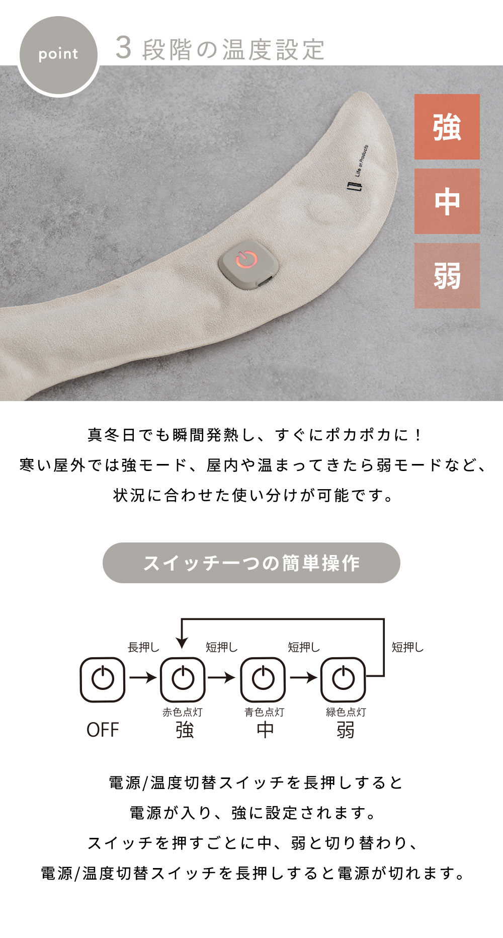 備考※長時間同じ場所にあてて使用しないでください。