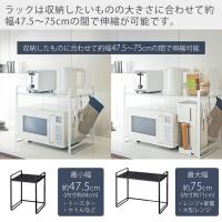 ラックは収納したいものの大きさに合わせて約幅47.5〜75cmの間で伸縮が可能です。ケトルやトースターなどの小さめの家電から、電子レンジやオーブンレンジなどの大き目の家電が収納可能です。