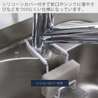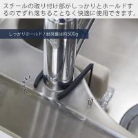 蛇口に挟み込むだけで簡単に設置ができるシンプルなスポンジホルダー。お掃除の際の取り外しも簡単なのでいつでもキレイをキープできます。