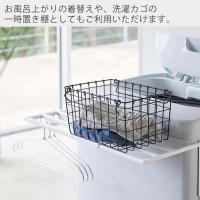 お風呂上がりの着替えや、洗濯カゴの一時置き棚としてもご利用いただけます。 | 使わないときは向きを変えて付け替えれば、邪魔にならずすっきりと収納できます。 |