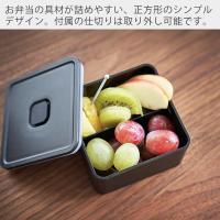 お弁当の具材が詰めやすい、正方形のシンプルで直線的なデザイン。付属の仕切りは取り外しや位置を移動させることができるので、好きな場所で区切ることができます。