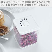 蓋には容器をワンプッシュで簡単密閉できるバルブが付いています。茶葉や海苔などの乾物から薬味やお漬物などの水分を含んだ食材まで、乾燥や湿気から防いで鮮度をキープします。