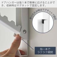 ドアハンガーは指1本で簡単に広げることができます。また、ドアハンガーを収納しているときはマグネットで固定しますので、多少の衝撃でハンガーが広がってしまうことはありません。