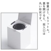 シンプルなスクエア型で、トイレのコーナーにぴったりと収まります。内ケースがワンタッチで外せて、お手入れが簡単です。容量は1.5L。内ケースの切り込みにビニール袋を固定できます。内ケースはワンタッチで外せて、セットする時も外ケースをかぶせるだけ。簡単に取り外しができます。「 トイレブラシ(別売り)」と組み合わせると狭いスペースでもスッキリ配置できます。