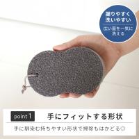 手に馴染む形状で掃除しやすく、バスタブや洗面台、風呂いすなどの頑固な水垢もスッキリ洗い落とせます。